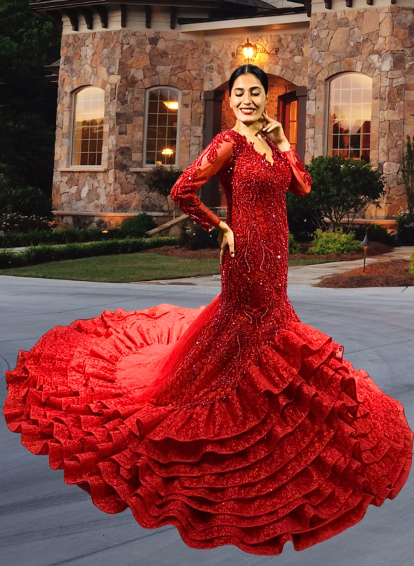 Style tip: This gown doesn’t whisper — it roars. Pair it with a sleek updo, bold earrings, and nothing else. The dress is the moment.
